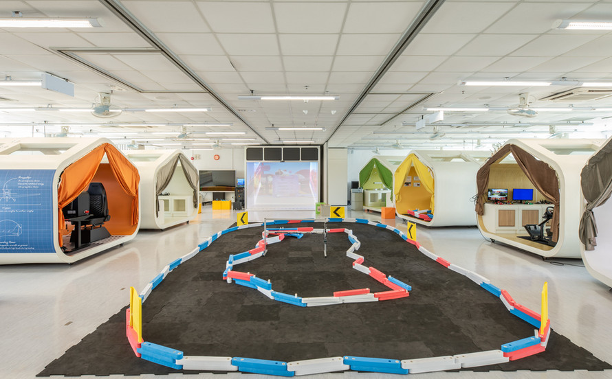 實驗及探索是作為求真及創新的最重要精神之一, 所以這次綜合室(實驗室)以[「探索/explore」為主題,新「探索」和「EXPLORE」 展示櫃以鬼腳圖為設計元素,以橙色為主調,為綜合室帶來光亮、新鮮及有趣的氣氛,鼓勵探索創新思維。